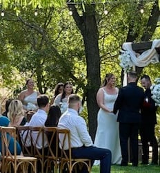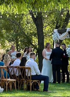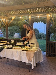 I researched Day of Coordinators, but decided as a type A bride, I could do it all. Bridesmaids and aunts offered to help to save money. Our wedding took place in Sacramento in September, with both the ceremony & reception outdoors in 90-degree heat. The ceremony began at 3:00 p.m., and although the area was partially shaded, I didn’t consider where the sun would be from 3:30 to 5:00. Our cocktail & dining area was in direct sunlight. Candles melted, and the wooden tables and chairs were hot to the touch. We even had guests leave before dinner because of the heat.